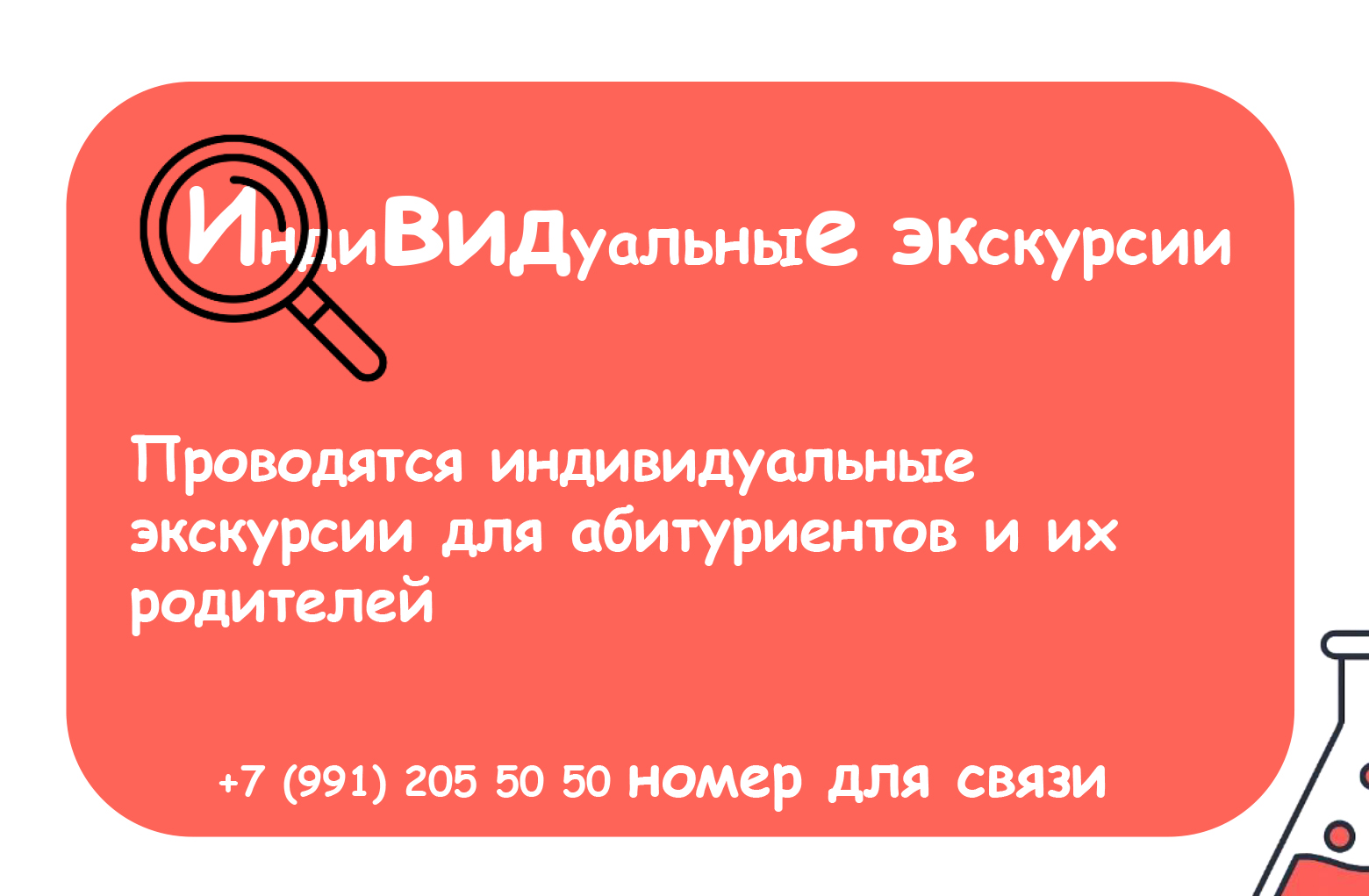 проводятся бесплатные индивидуальные экскурсии для абитуриентов и их родителей, каждый четверг в 17.30, время может изменяться по согласованию